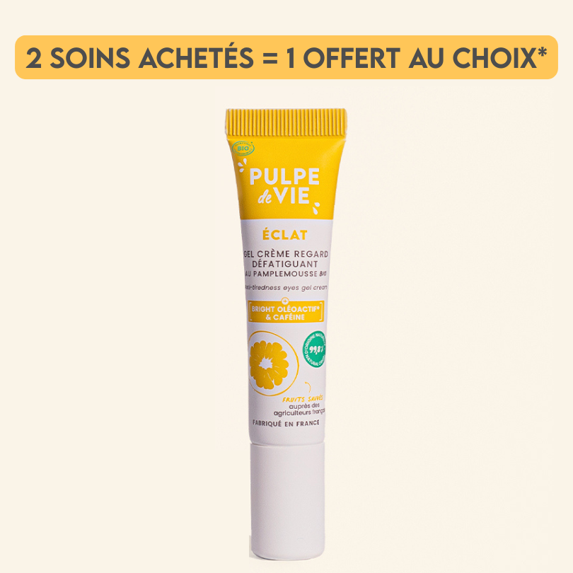 Gel Crème Regard Défatigant visibly reduces dark circles and puffiness under the eyes. Enriched with caffeine and Bright Oléoactif®, it instantly illuminates and decongests the eye contour area.